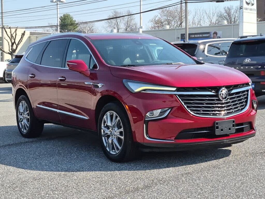 EXPERIENCE BUICK PACKAGE includes (C3U) Power-sliding moonroof and (SUB) 20 polished aluminum wheels, AUDIO SYSTEM, 8 DIAGONAL BUICK INFOTAINMENT SYSTEM WITH NAVIGATION includes multi-touch display, AM/FM/SiriusXM stereo, Bluetooth® streaming audio for music and most phones, Android Auto® and Apple CarPlay® capability for compatible phones, advanced voice recognition, in-vehicle apps, personalized profiles for infotainment and vehicle settings (Includes (UQA) Bose premium 10-speaker system and (KI6) 120-volt power outlet. ENGINE, 3.6L V6, SIDI, VVT STOP/START (310 hp [231 kW] @ 6800 rpm, 266 lb-ft of torque [359 N-m] @ 2800 rpm) (STD), 9-SPEED AUTOMATIC (STD). Buick Essence with Cherry Red Tintcoat exterior and Dark Galvanized with Ebony interior accents interior features a V6 Cylinder Engine with 310 HP at 6800 RPM*.
