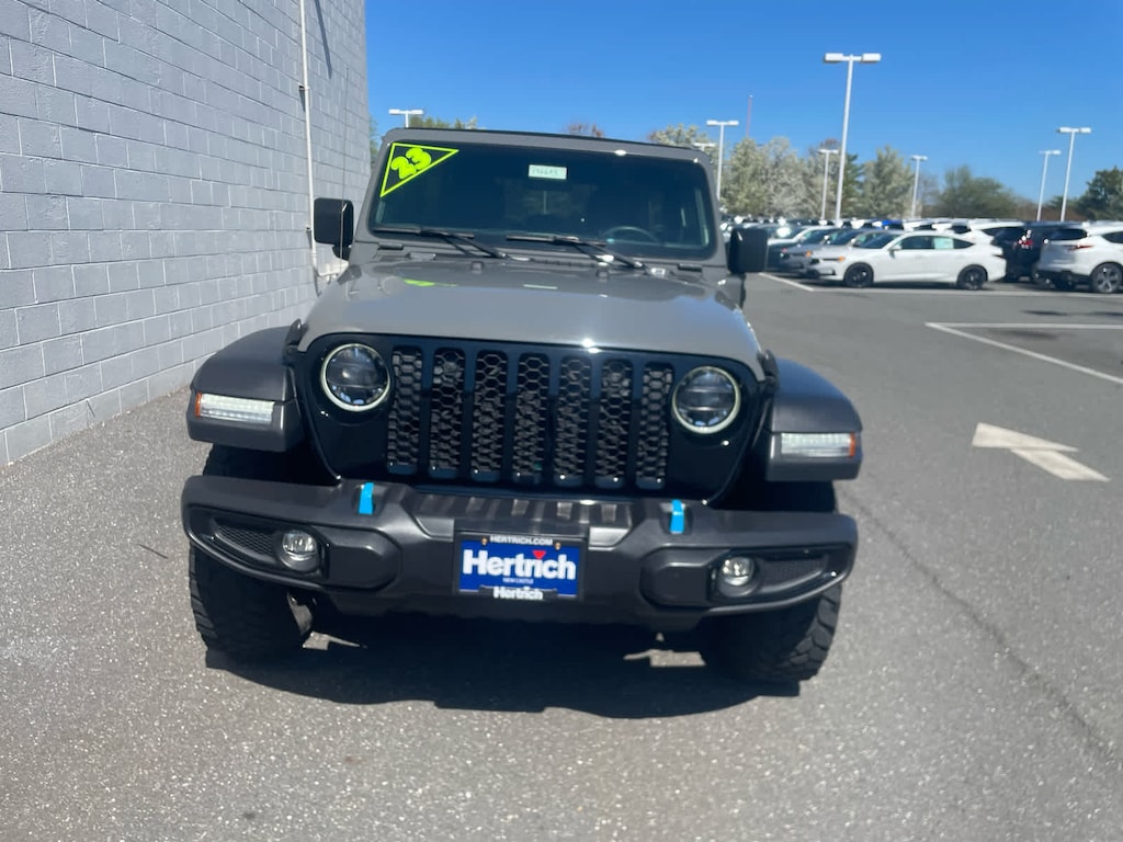Media Hub - 2 USBs (Both Charge Only), Rear Window Defroster, Remote USB Port - Charge Only, 115-Volt Auxiliary Power Outlet, 8.4 Radio Group, Off-Road Info Pages, SiriusXM Traffic Plus, HD Radio, Radio: Uconnect 4C Nav w/8.4 Display, For Details, Visit DriveUconnect.com, Rear View Auto Dim Mirror, 1-Year SiriusXM Guardian Trial, GPS Navigation, SiriusXM Travel Link, Emergency/Assistance Call, 8.4 Touchscreen Display, Rear Window Wiper/Washer, Removable Rear Quarter Windows, Power Top Quarter Window Storage Bag, Sky 1-Touch Power Top, Console Bin Task Light, Heated Steering Wheel, Remote Start System, Heated Front Seats, Universal Garage Door Opener, Engine: 2.0L I4 DOHC DI Turbo PHEV, Transmission: 8-Speed Auto 8P75PH PHEV, Willys, 4xe 4-Wheel Drive Swing Gate Decal, Willys 4xe Hood Decal, Black Grille, MOPAR All-Weather Floor Mats, Rock Protection Sill Rails, 97 MPH Vehicle Max Speed Calibration, Anti-Spin Differential Rear Axle, Molded-In-Color Fender Flares (2-Piece), Front LED Fog Lamps, LED Premium Reflector Headlamps, LED Headlamp & Fog Lamp Group, (STD), (STD). Jeep Wrangler 4xe with Sting-Gray Clearcoat exterior and Black interior features a 4 Cylinder Engine with 375 HP at 5250 RPM*.